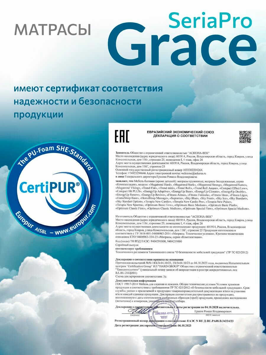 Анатомический матрас, Ортопедический матрас 180х190 см Seria Pro Grace, Независимые пружины