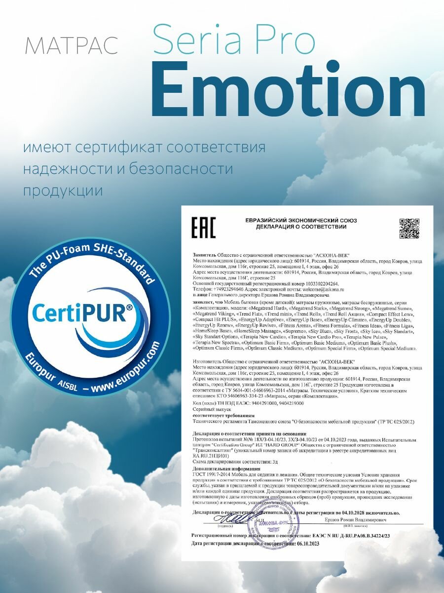 СохранитьАнатомический матрас, Ортопедический матрас 160х200 см Seria Pro Emotion, Независимые пружины интересное: