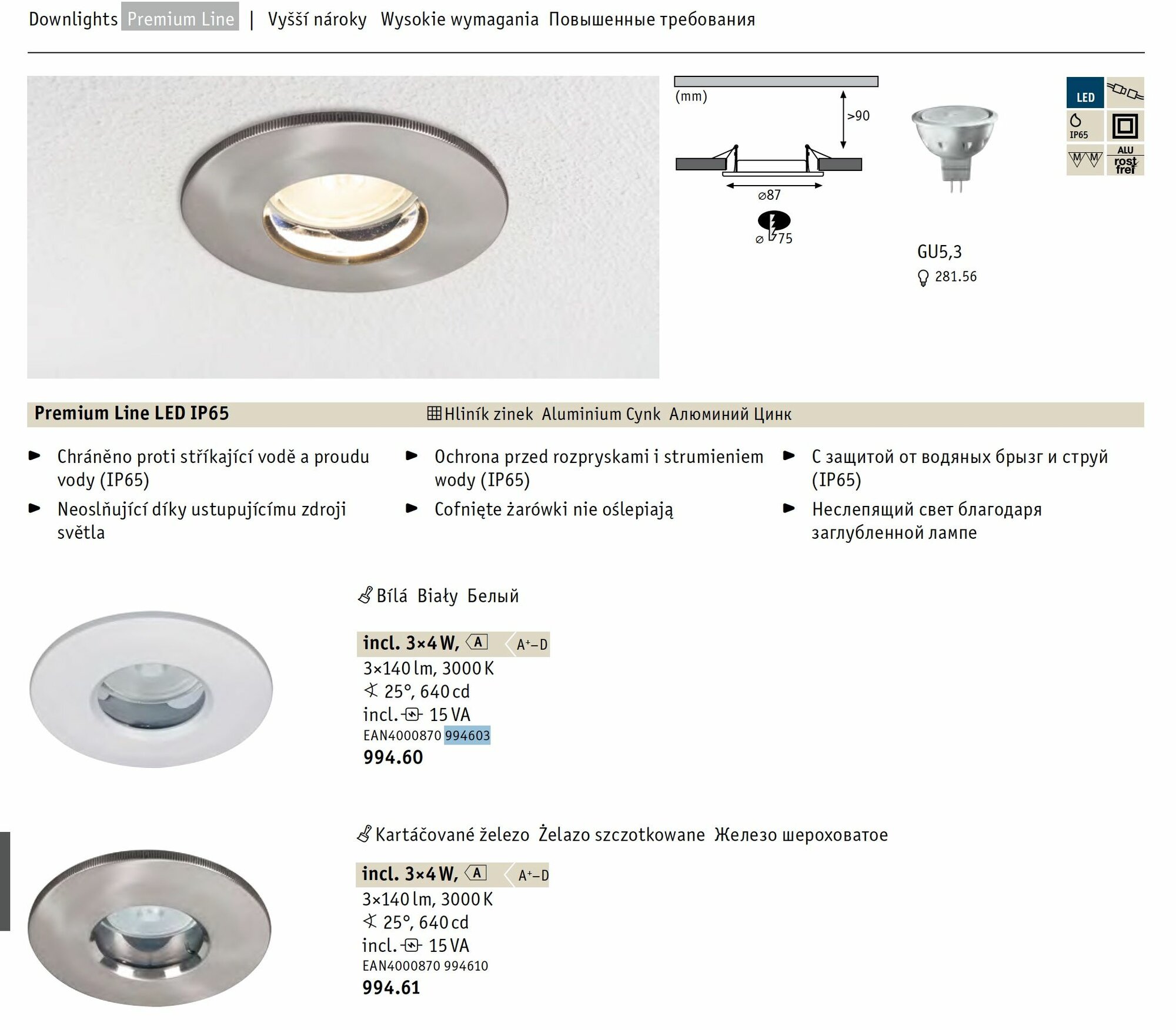 Светильник встраиваемый Paulmann Premium Line 4Вт 140Лм 3000К IP65 GU5.3 LED 230/12В Железо шероховатое Не диммируется Набор 3 штуки Трансформатор 15Va D87мм 99461. интересное: