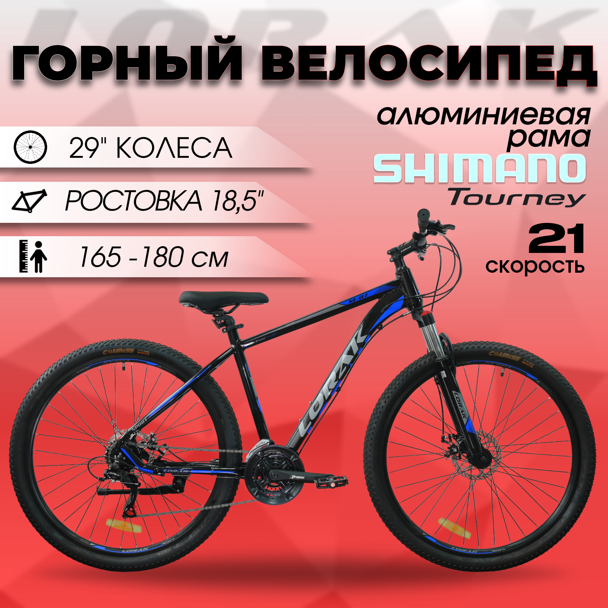 Купить Велосипед горный LORAK M-07 Prom 18, р Чёрный/Синий глянец, под рост 165-180 см, 21 скорость
