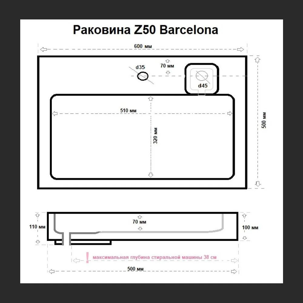 СохранитьРаковина над стиральной машиной Barcelona 60x50, цвет белый, литьевой мрамор интересное: