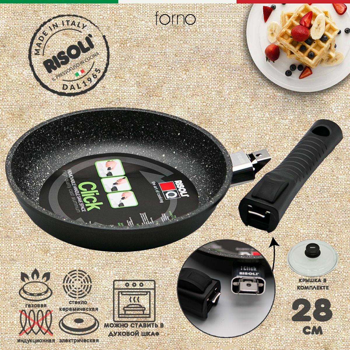 Сковорода Risoli Forno 28см с крышкой со съемной ручкой
