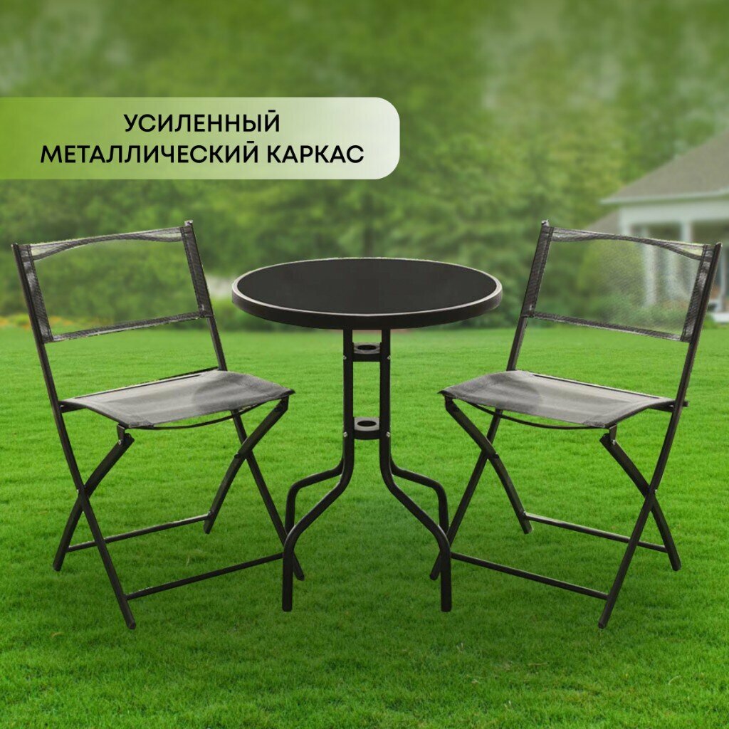 Мебель садовая Green Days, Дуэт, черная, стол, 60х60х70 см, 2 стула
