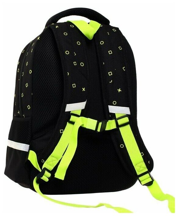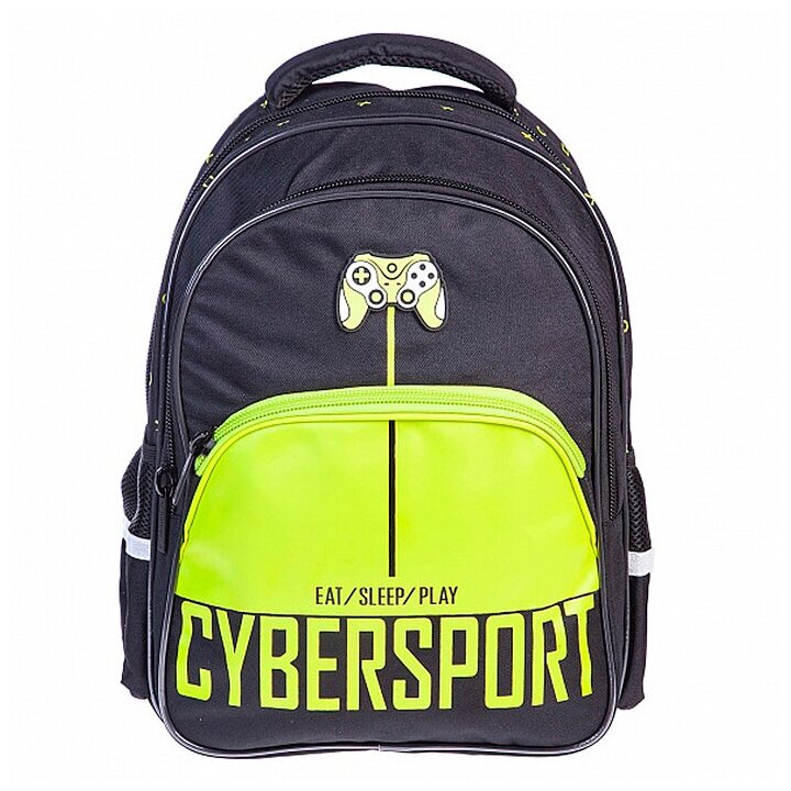 Рюкзак школьный 41 х 29 х 16 см, эргономичная спинка, Hatber Easy, CYBER SPORT, салатовый/чёрный NRk_76079