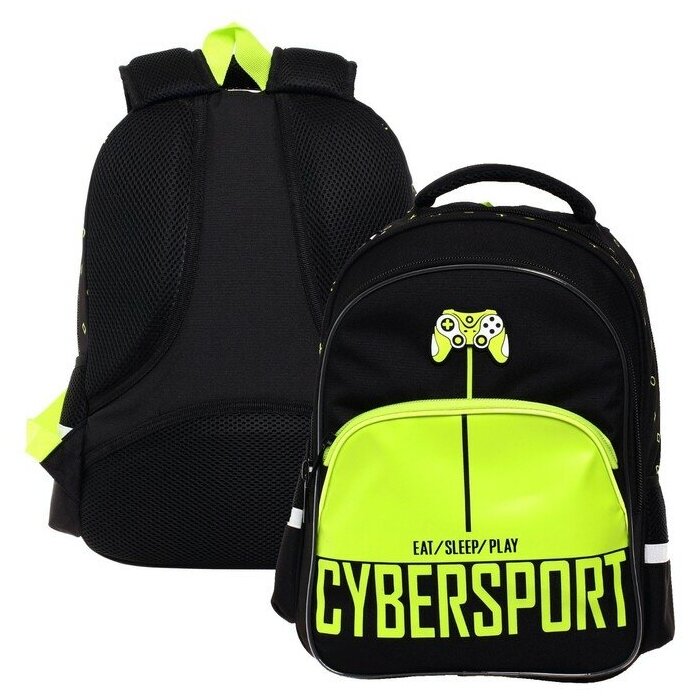 Hatber Рюкзак школьный Hatber Easy CYBER SPORT, 41 х 29 х 16 см, эргономичная спинка, салатовый, чёрный