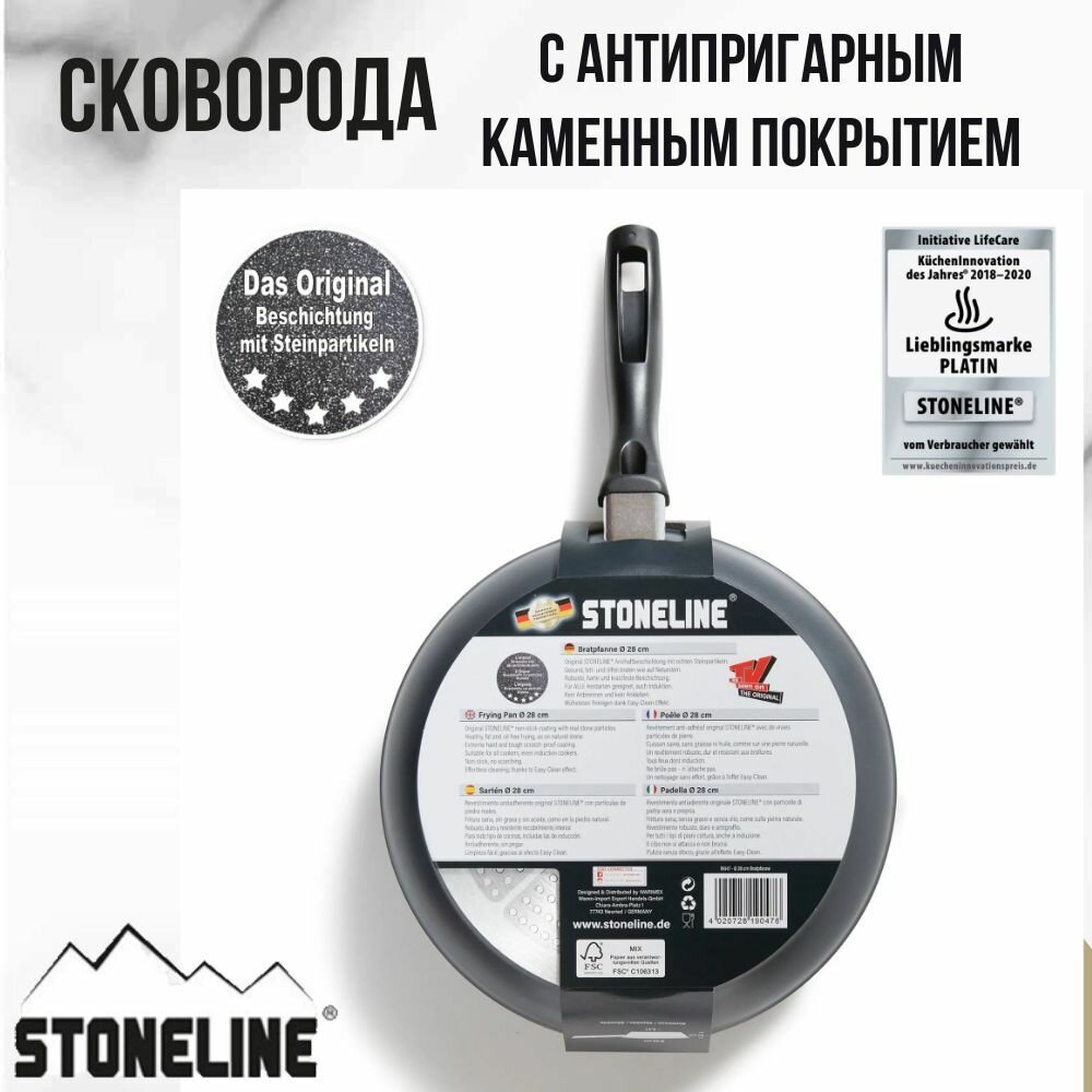 Сковорода Stoneline 28 см без крышки с каменным покрытием и индукционным дном интересное: