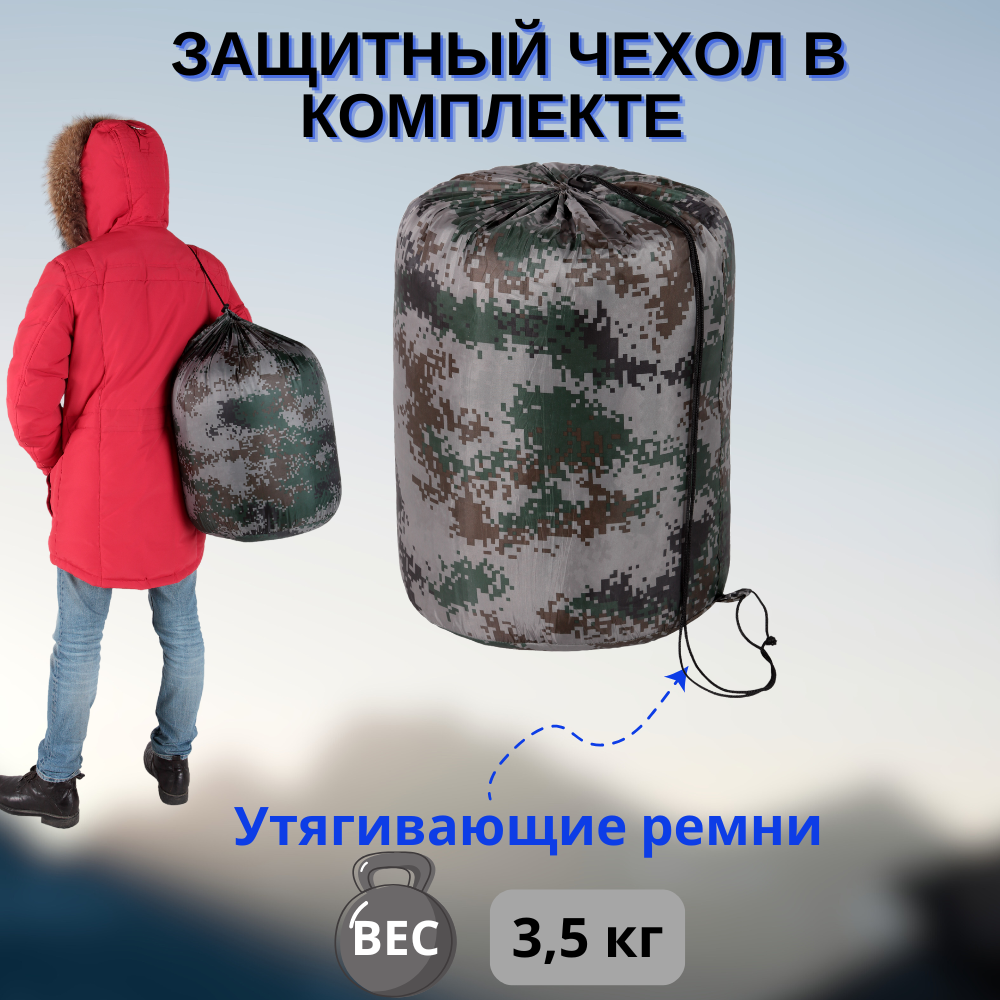 Армейский спальный мешок, Размер 210х85 см, до - 30 °C, цвет Пиксель интересное: