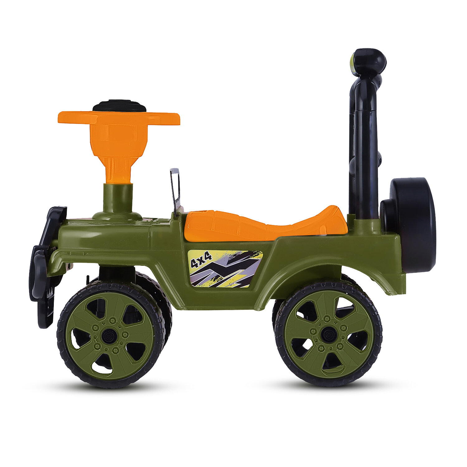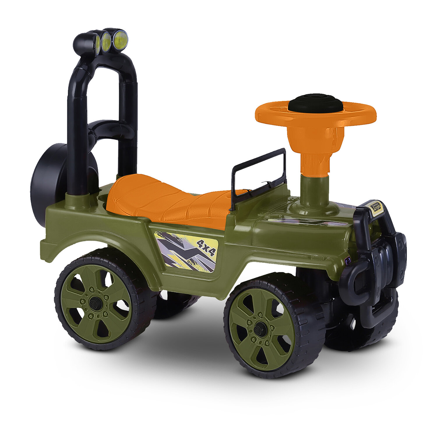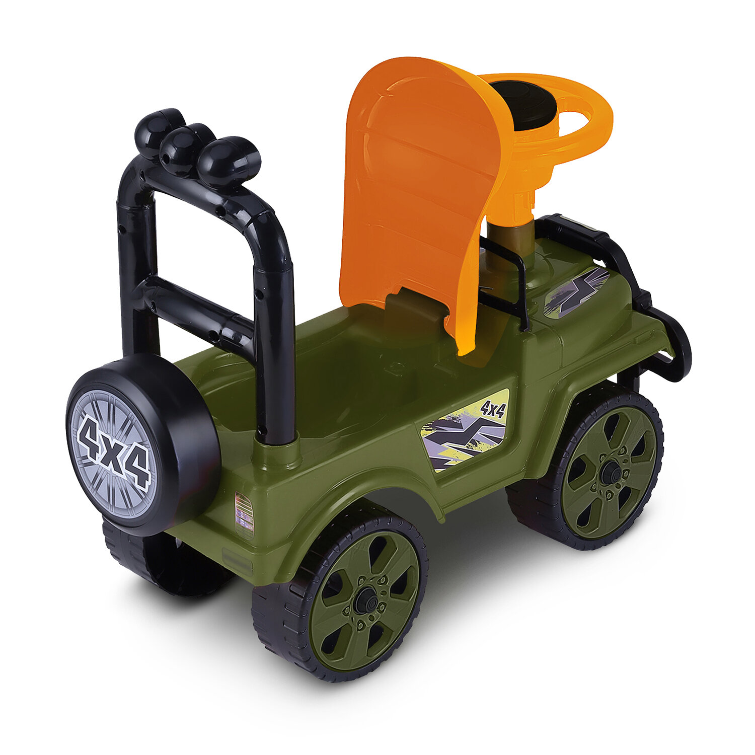 Купить Каталка детская толокар , внедорожник, джип, пушкар, пластиковые колеса, высокая спинка, багажник, хаки, JB5300682