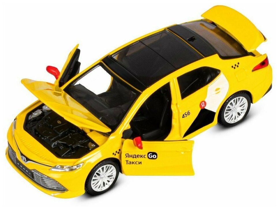 Машинка металлическая инерционная Яндекс Go, Toyota Camry, М1:34, открываются двери/капот/багажник, свет, звук, озвучка Яндекс Go, желтый, JB1251482