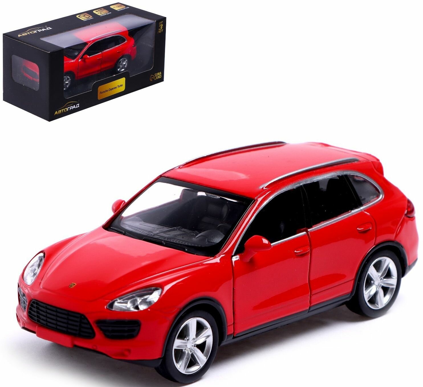 Автоград Машина металлическая PORSCHE CAYENNE TURBO, 1:32, открываются двери, инерция, цвет красный