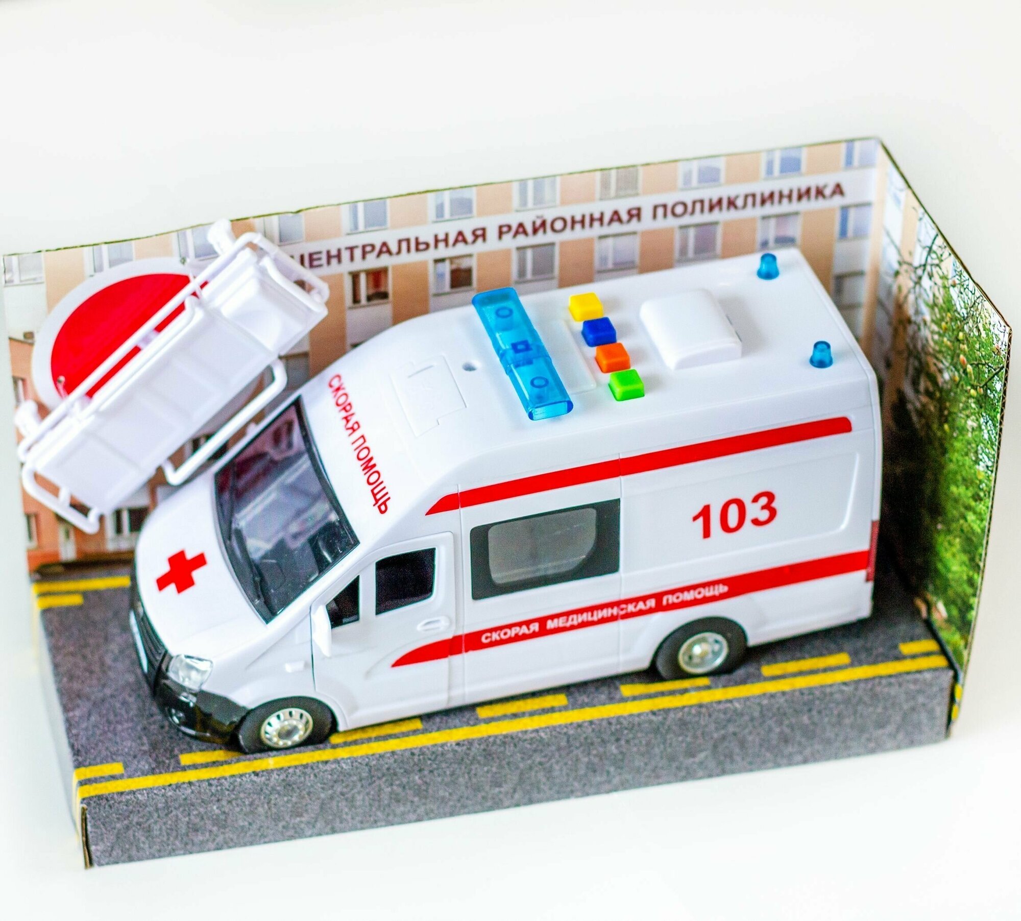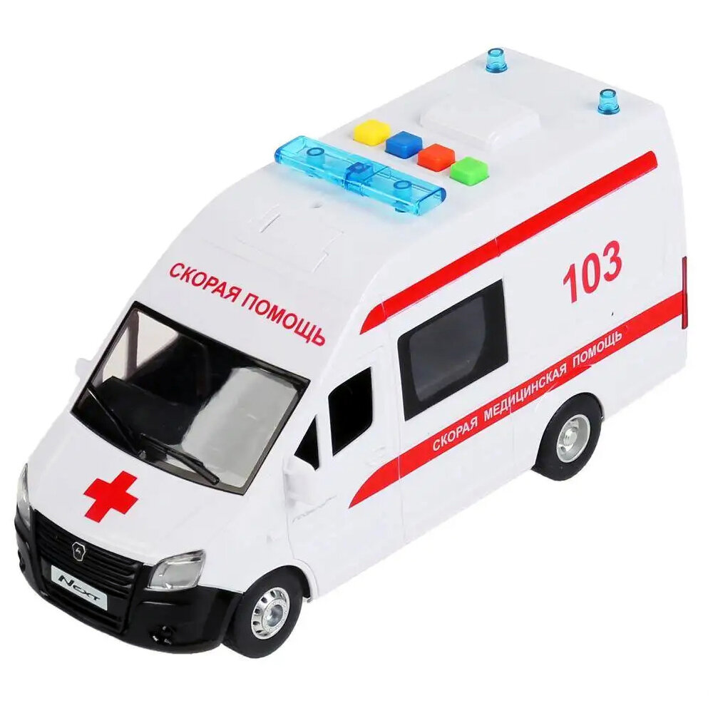 Купить Машинка инерционная Технопарк Газель Next Скорая помощь , пластик, открываются двери, свет, звук 22,5см