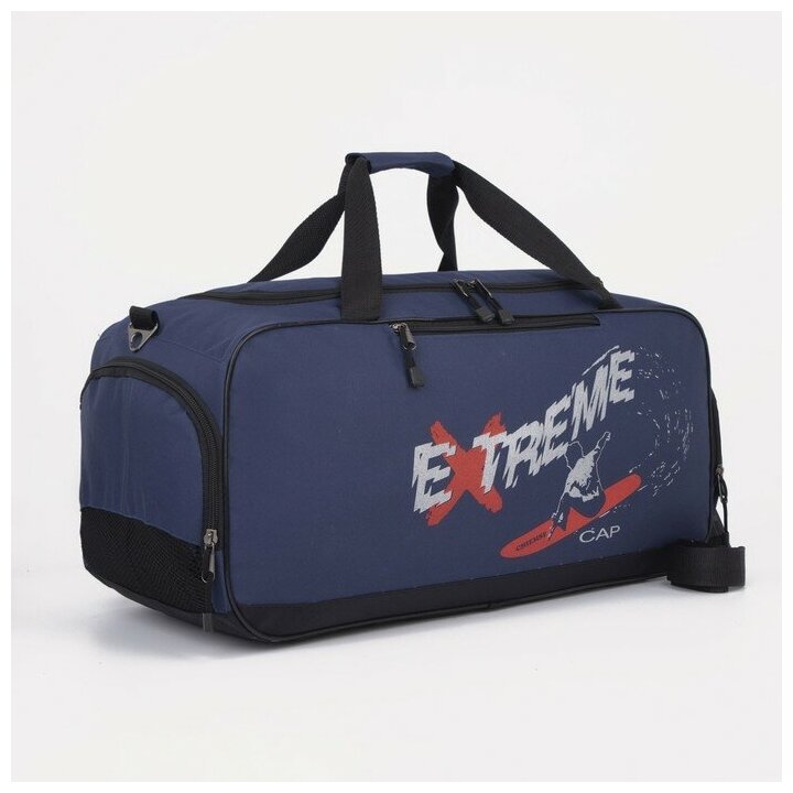 Сумка дорожная на молнии, отдел для обуви, наружный карман, длинный ремень, цвет синий