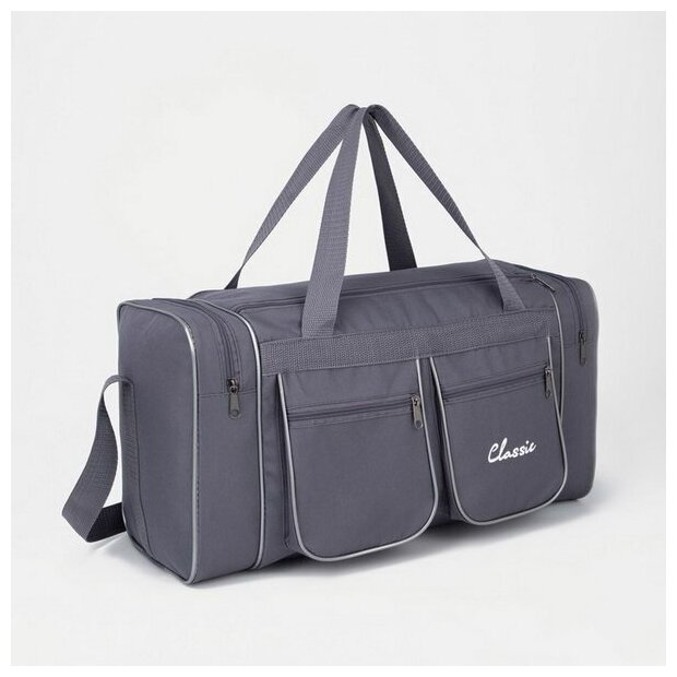 Сумка спортивная на молнии, 4 наружных кармана, длинный ремень, средний размер, цвет серый