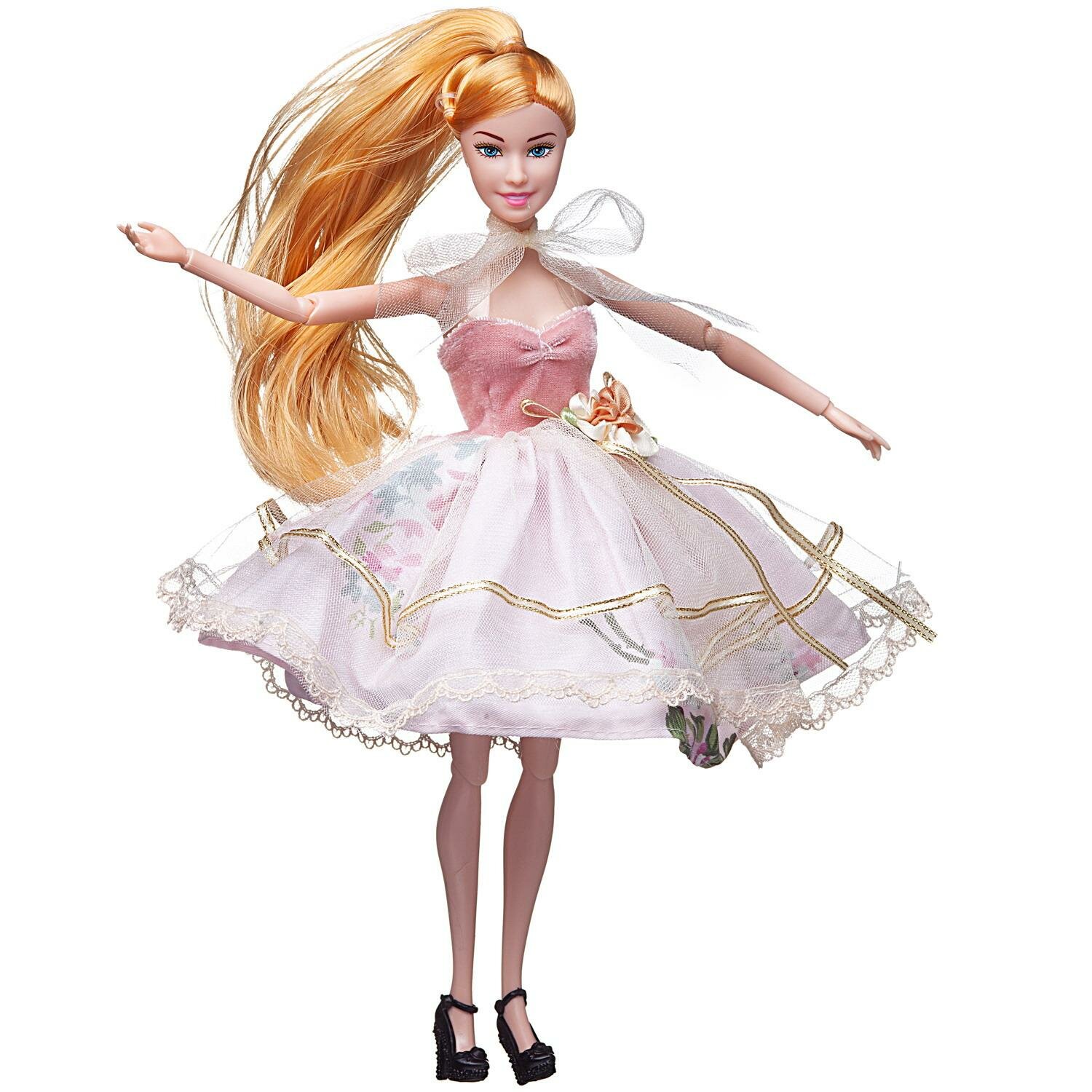 Кукла Junfa Atinil (Атинил) Весенняя свежесть в платье (розовый верх и двухслойная юбка) с расческой
