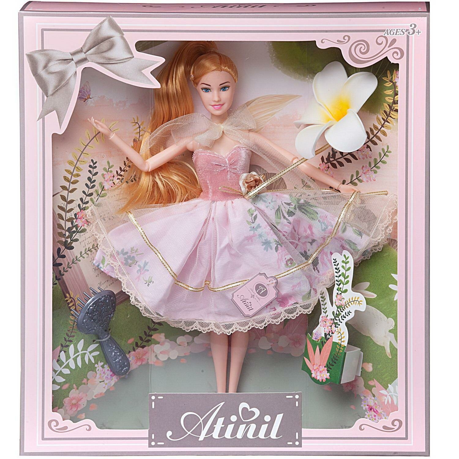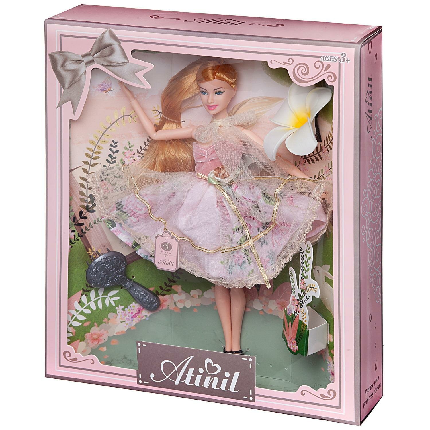 Купить Кукла Atinil. Весенняя свежесть в платье (розовый верх и двухслойная юбка) с расческой и цветком лотоса, 28см