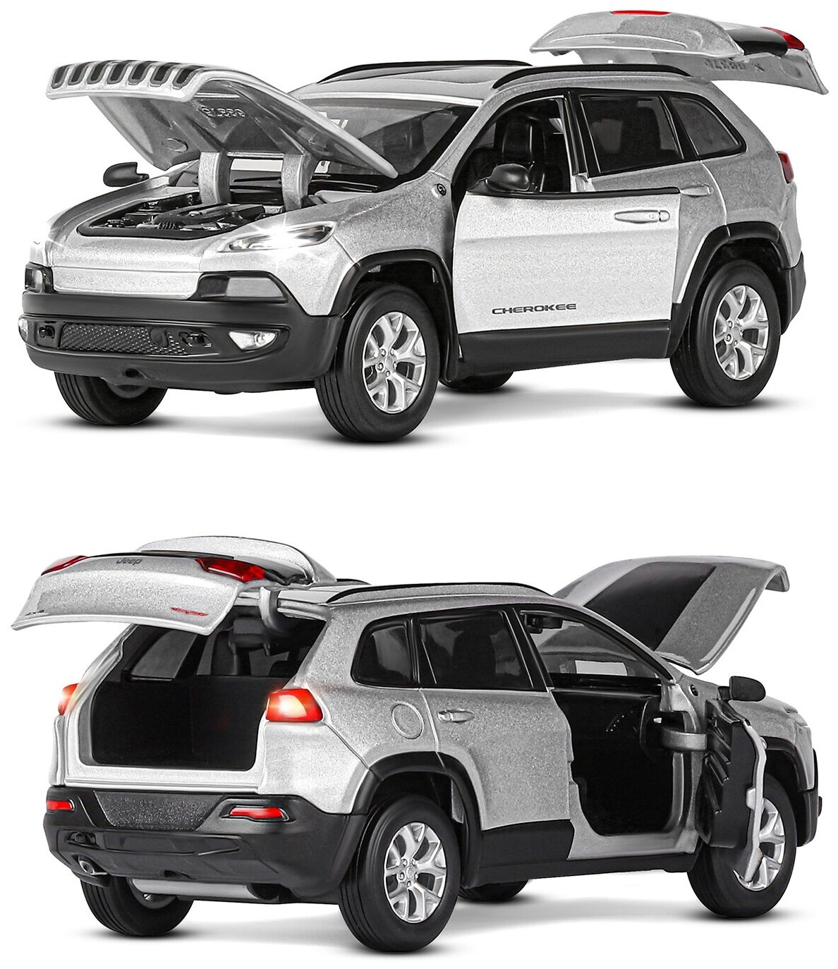 Купить Машинка металлическая инерционная Автопанорама Jeep Cherokee, М1:32, свет, звук, серебряный, JB1251498