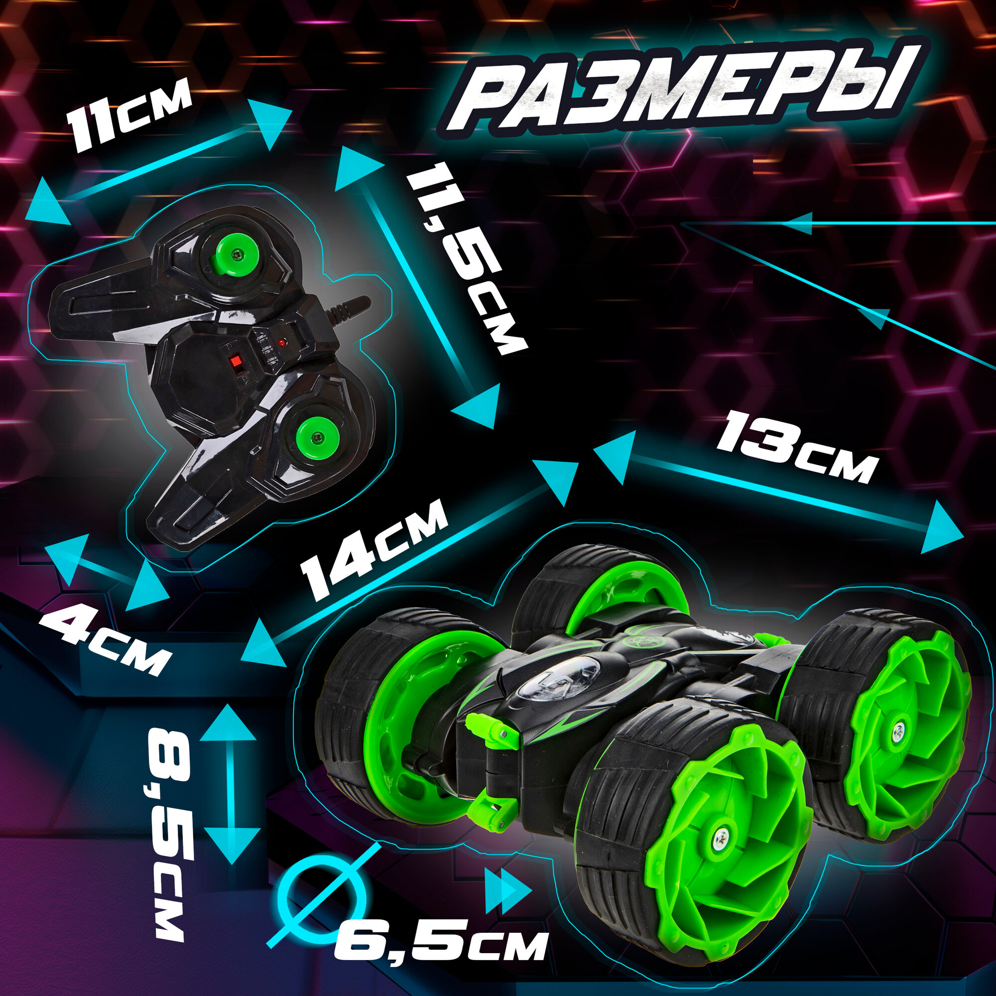 1toy Драйв, трюковая машина-перевертыш на р/у, размер: 12 см, 2,4 ГГц, 4 канала, вращение на 360 градусов, АКБ 3,7V380mAh, свет. эфф.