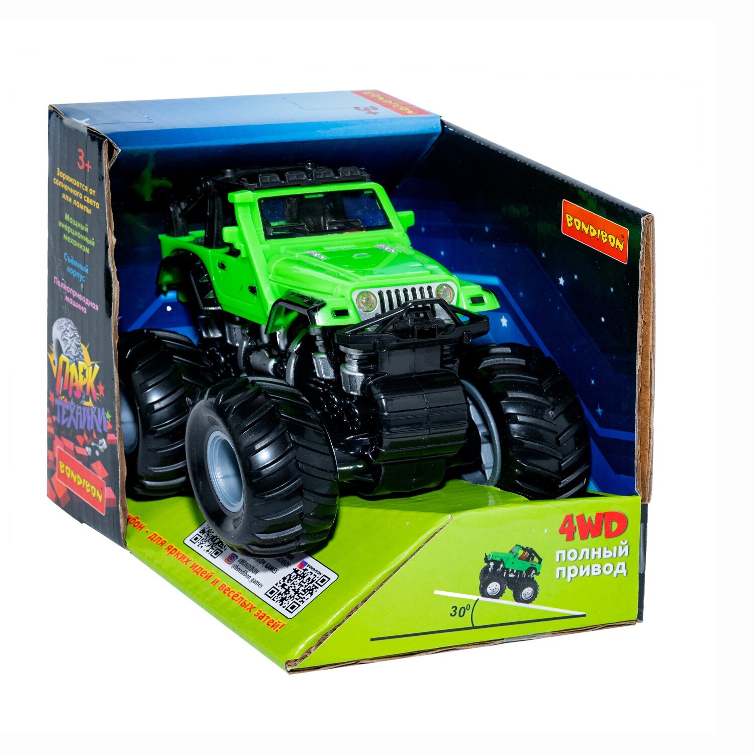 Купить Инерц. пласт. джип 4WD со светящ. в темноте корпусом, Bondibon "Парк Техники", цвет зелёный, ВОХ 14х11х12 см, арт. M1234-4.