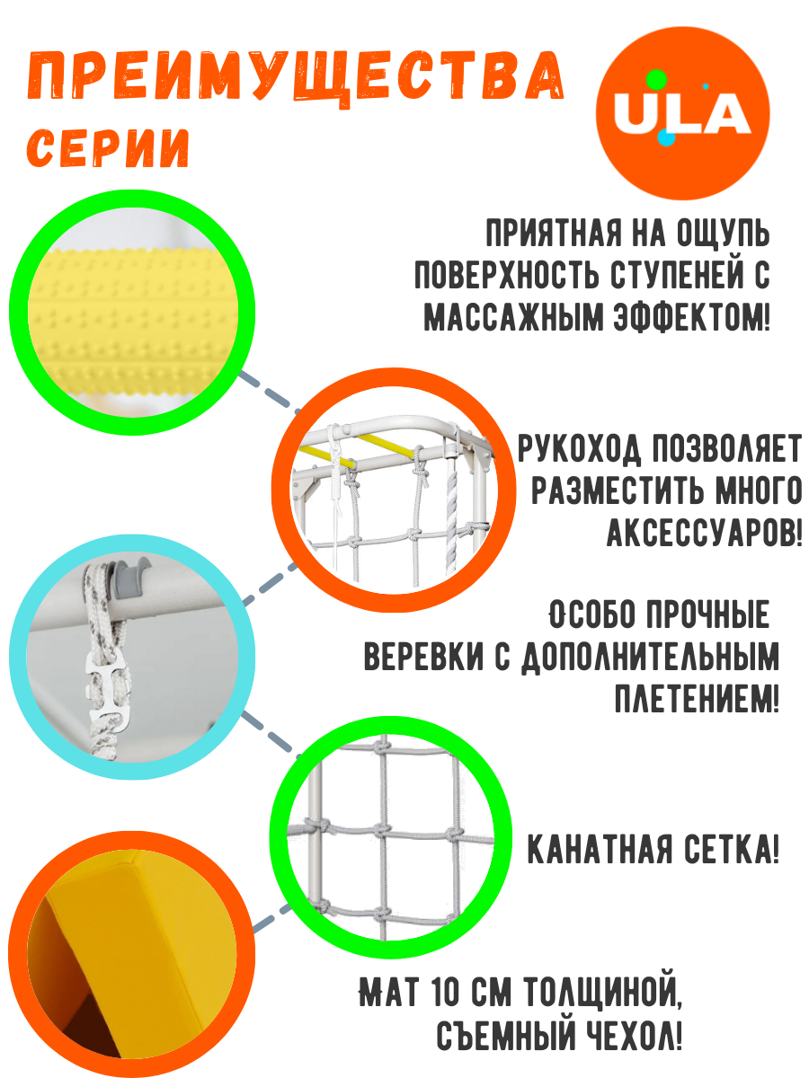 | В комплекте | гимнастические кольца, канат, мат, рукоход, сетка для лазания |