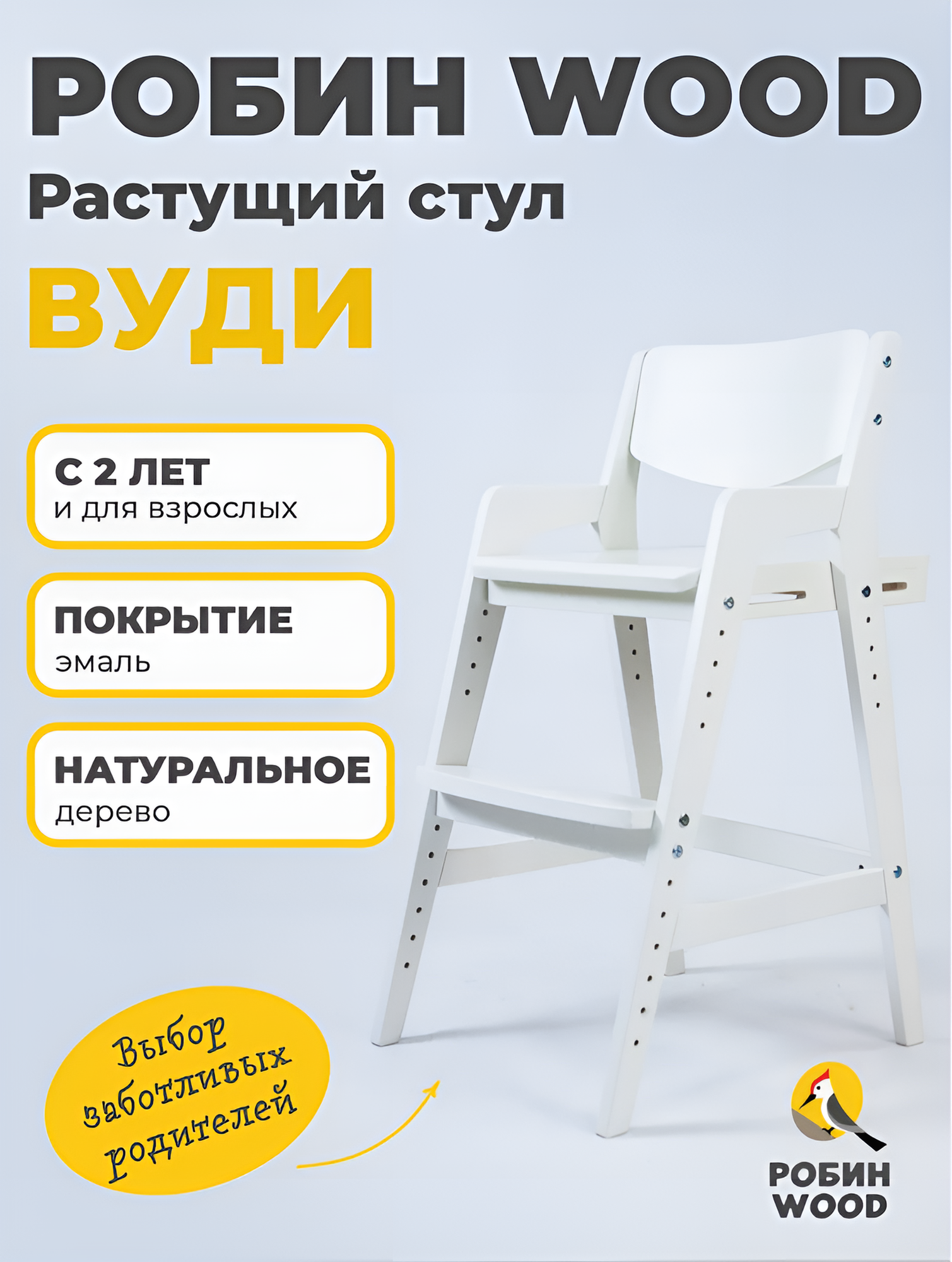 Детский растущий стул Робин WOOD Вуди, белый/ромбусы, 92–180см интересное: