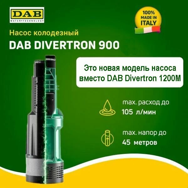 Насос колодезный DAB DIVERTRON 900 M (макс.920 Вт, 105 л/мин, напор 45м) обновленная модель DIVERTRON 1200 M