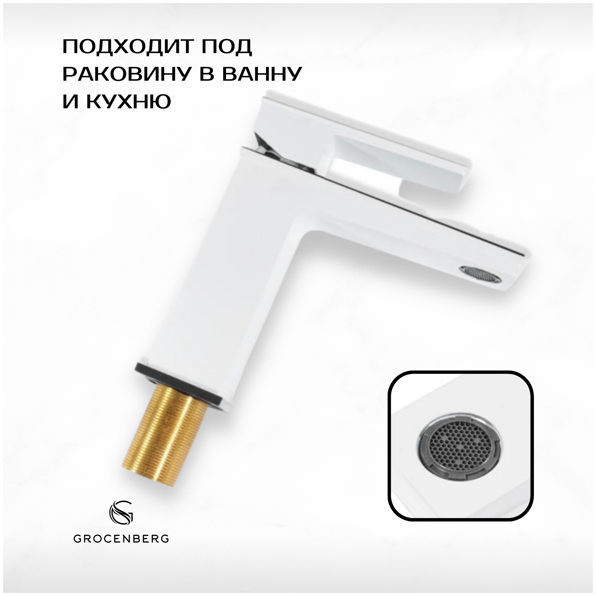 Смеситель для раковины Grocenberg GB2088WC, рычажный, белый, латунь, высота излива 17 см интересное: