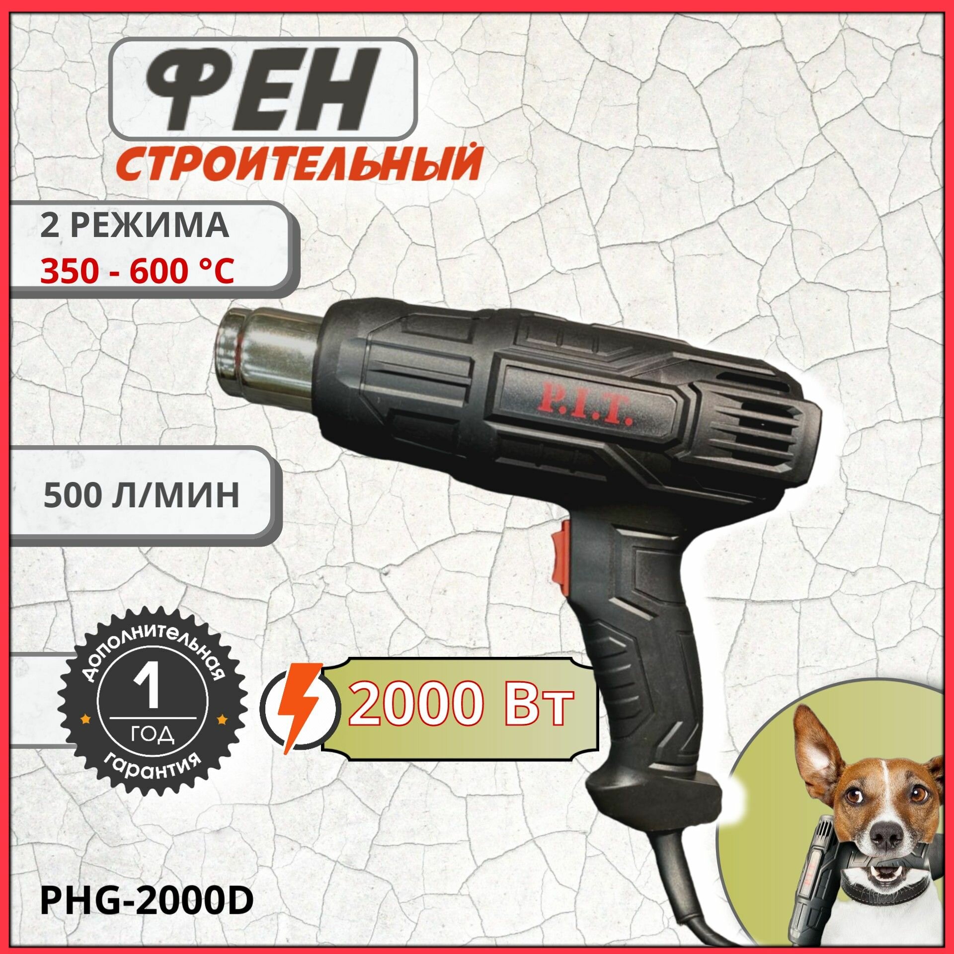 Строительный фен P.I.T. PHG 2000-D, 2000 Вт