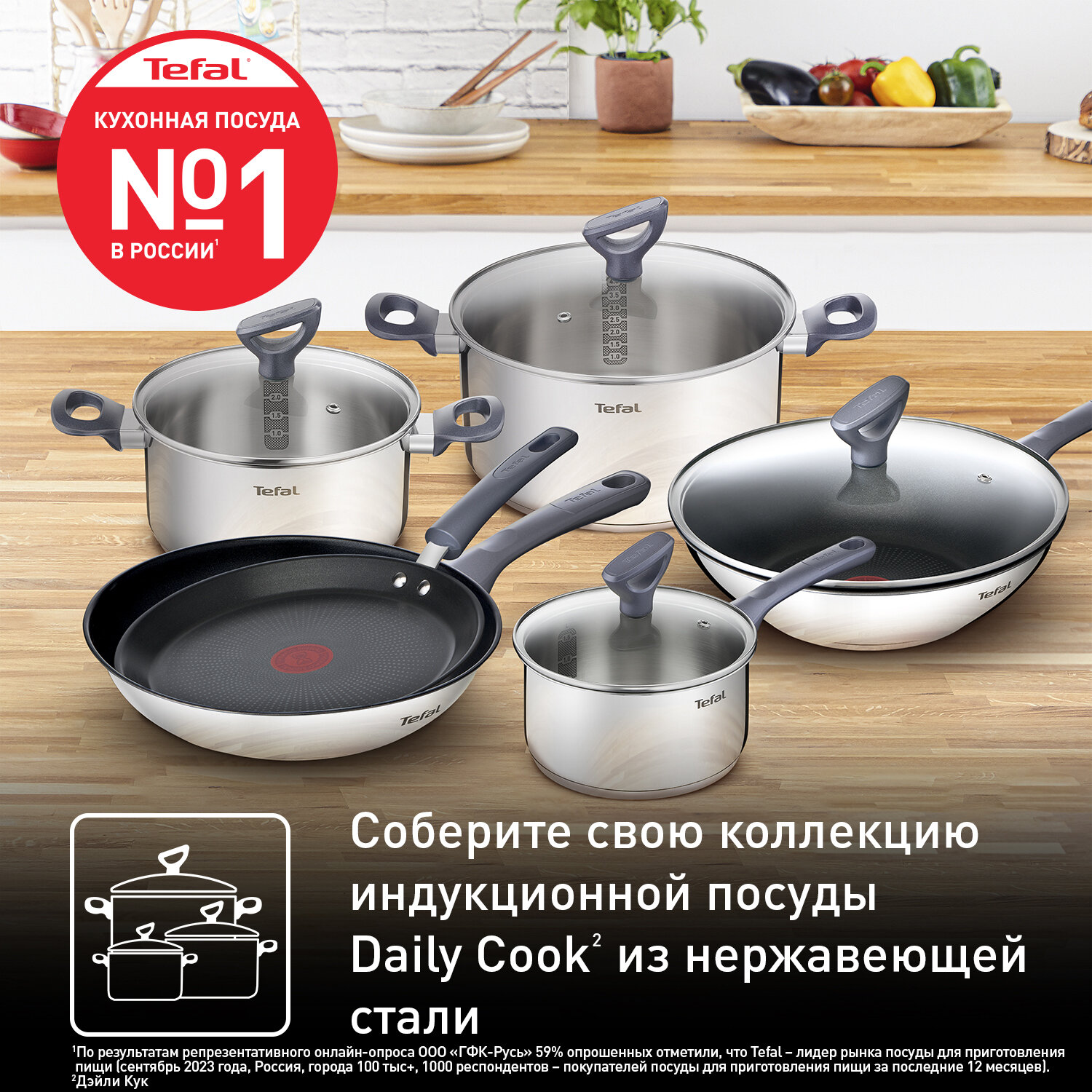 Ковш 18 см Tefal Daily cook G7122345 с крышкой, из нержавеющей стали, для всех типов плит, включая индукционные