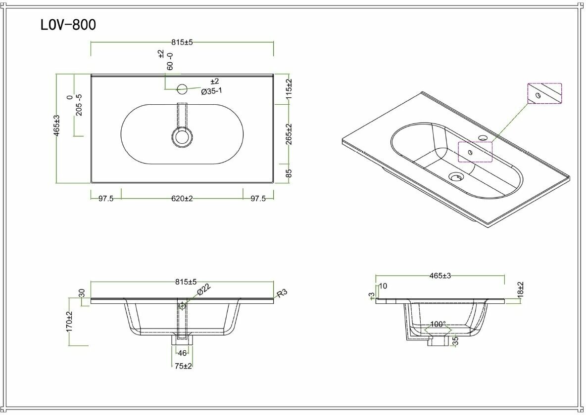 Купить BelBagno Керамическая раковина 810x460x175 мм LOV-800-LVB BELBAGNO