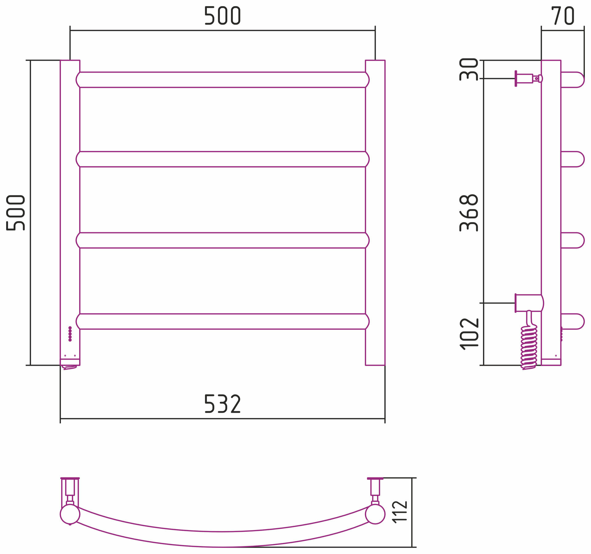 Полотенцесушитель электрический Сунержа Галант 4.0 600х500 МЭМ левый Без покрытия