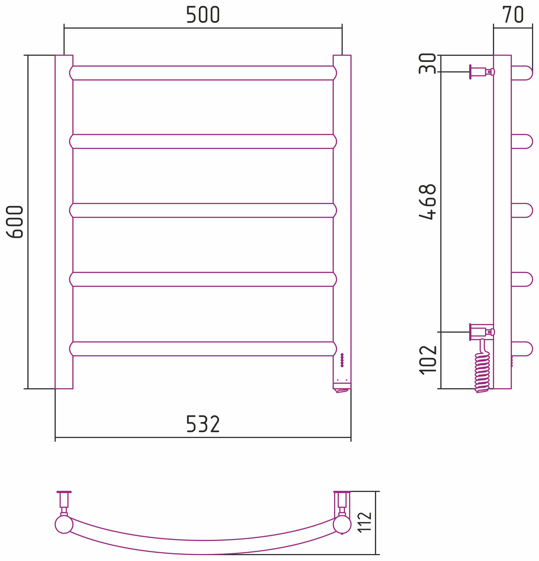 Полотенцесушитель электрический Сунержа Галант 4.0 600х500 МЭМ левый Без покрытия