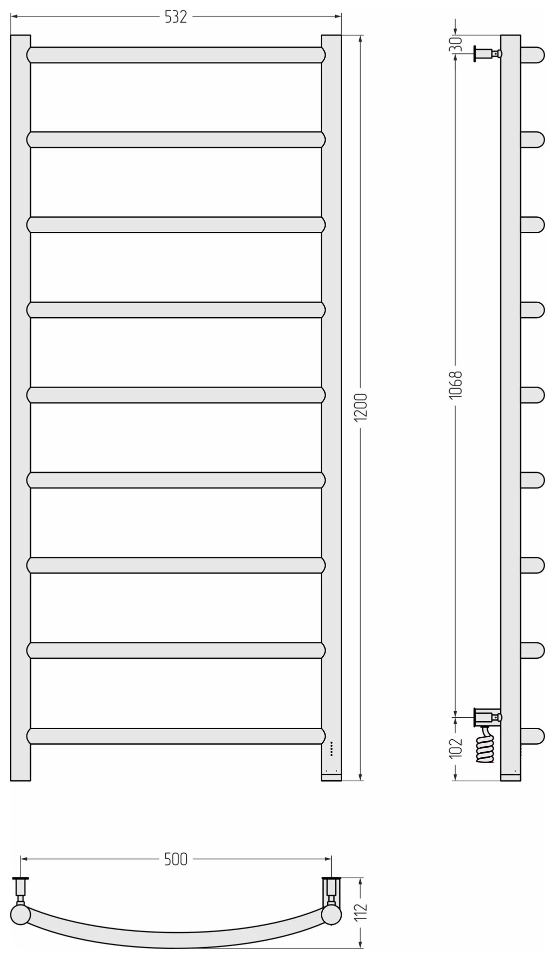 Полотенцесушитель электрический 600x500 белый глянец МЭМ правый Сунержа Галант 4.0 12-0831-6050