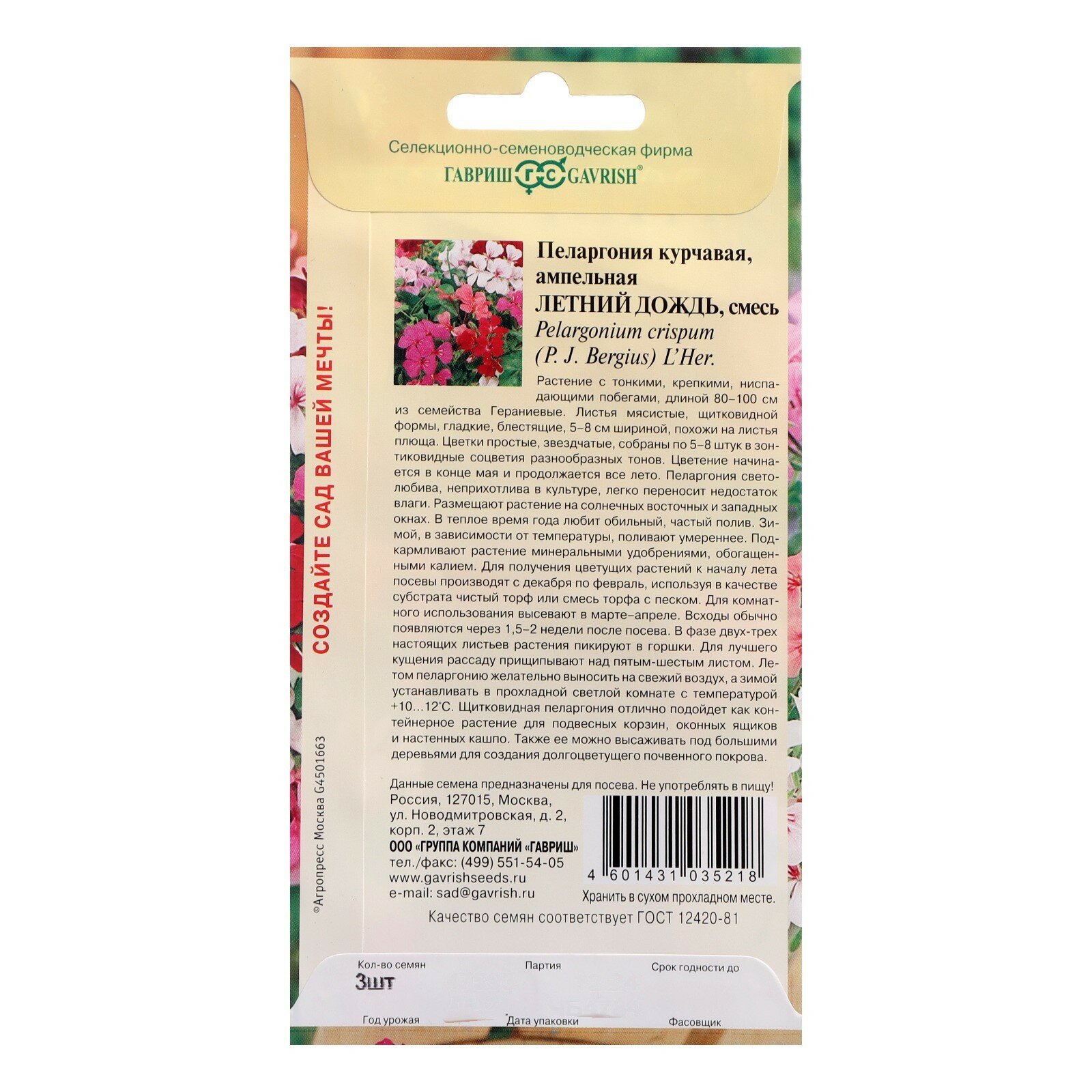 СохранитьСемена Гавриш Пеларгония ампельная Летний дождь, смесь 3шт/1 пакет интересное: