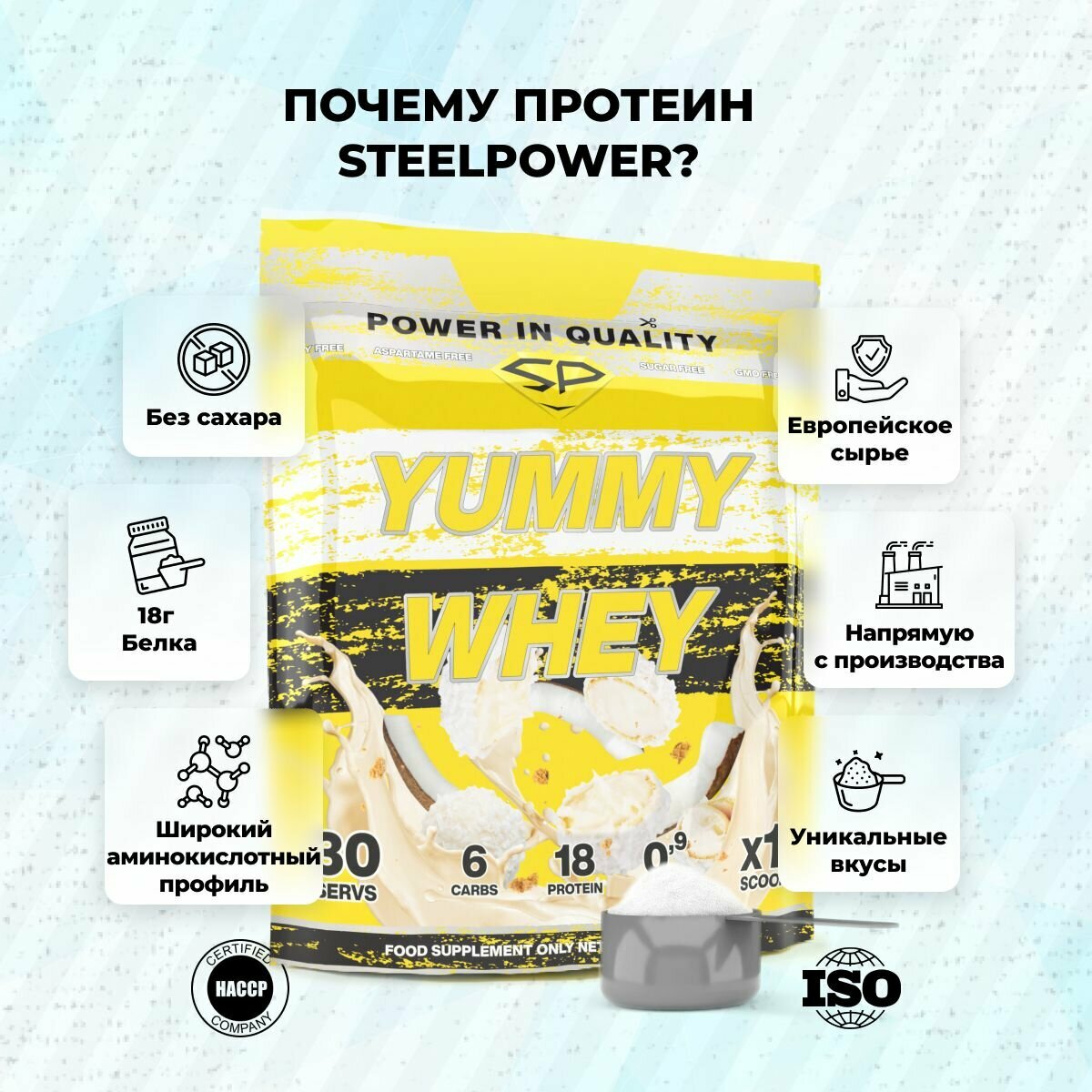 Сывороточный протеин STEELPOWER Yummy Whey, 900 гр, вкус Рафаэлло, порошок, 30 порций