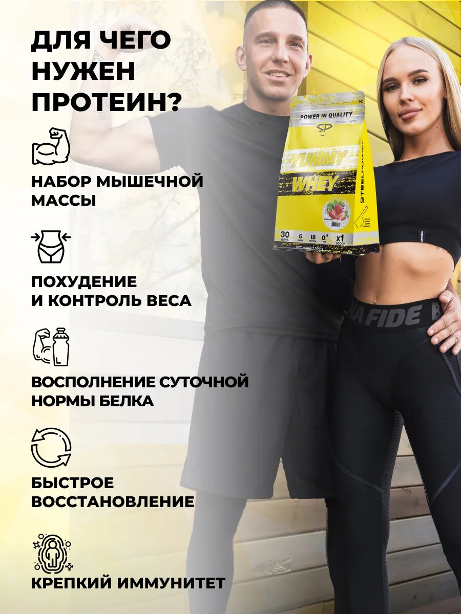 Протеин сывороточный белковый коктейль STEELPOWER Yummy Whey, 900 гр, Клубника, порошок, 30 порций
