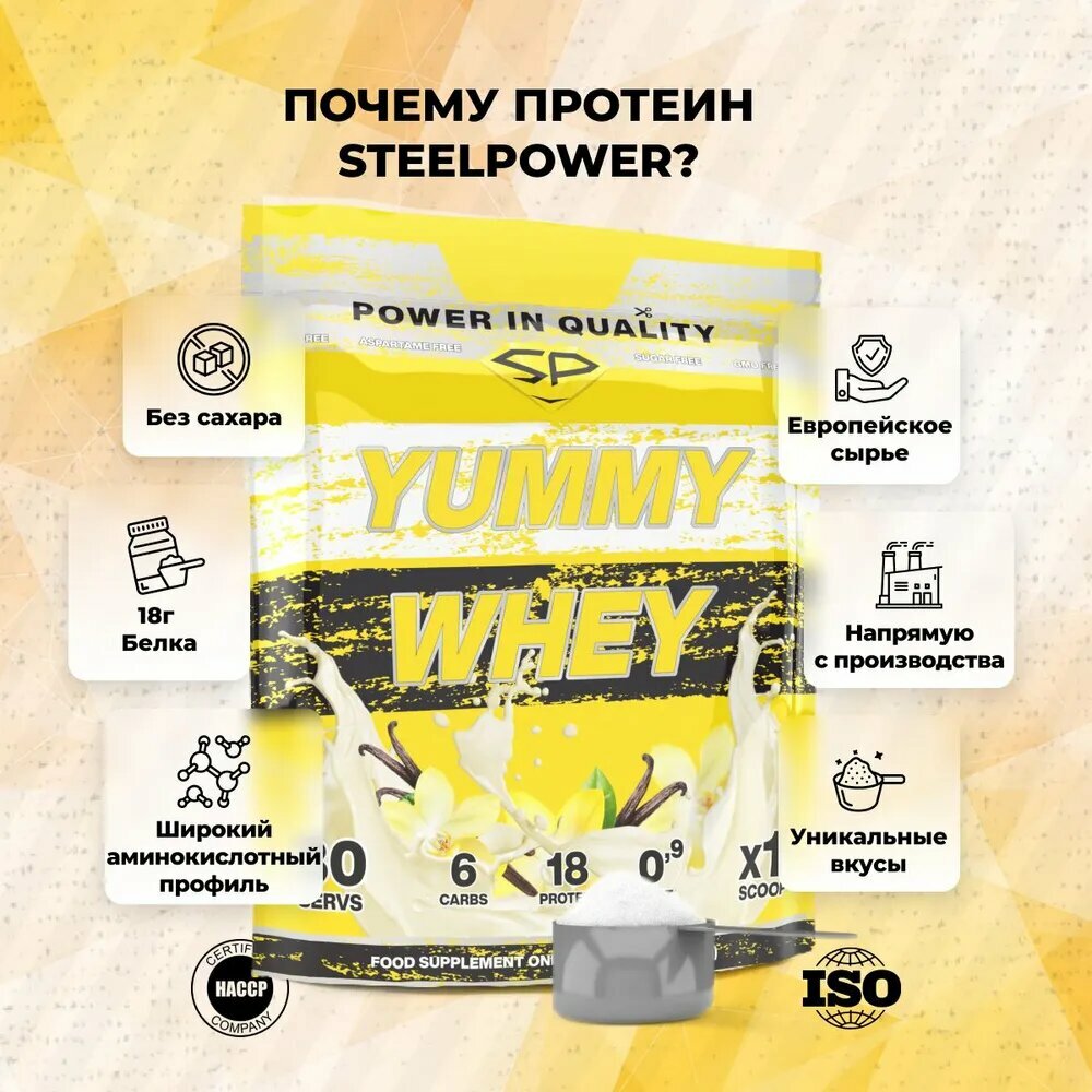 Купить Сывороточный протеин STEEL POWER Yummy Whey, Ваниль, 900 г (30 порций)