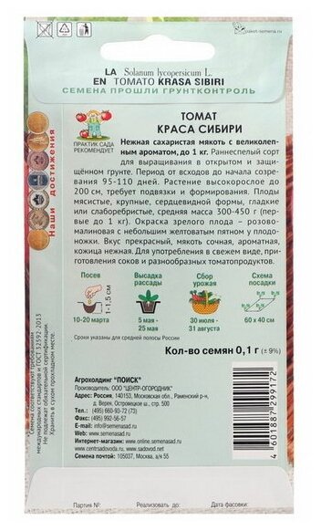 Купить Семена поиск Сибирская серия Томат Краса сибири 0.1гр/1 пакет