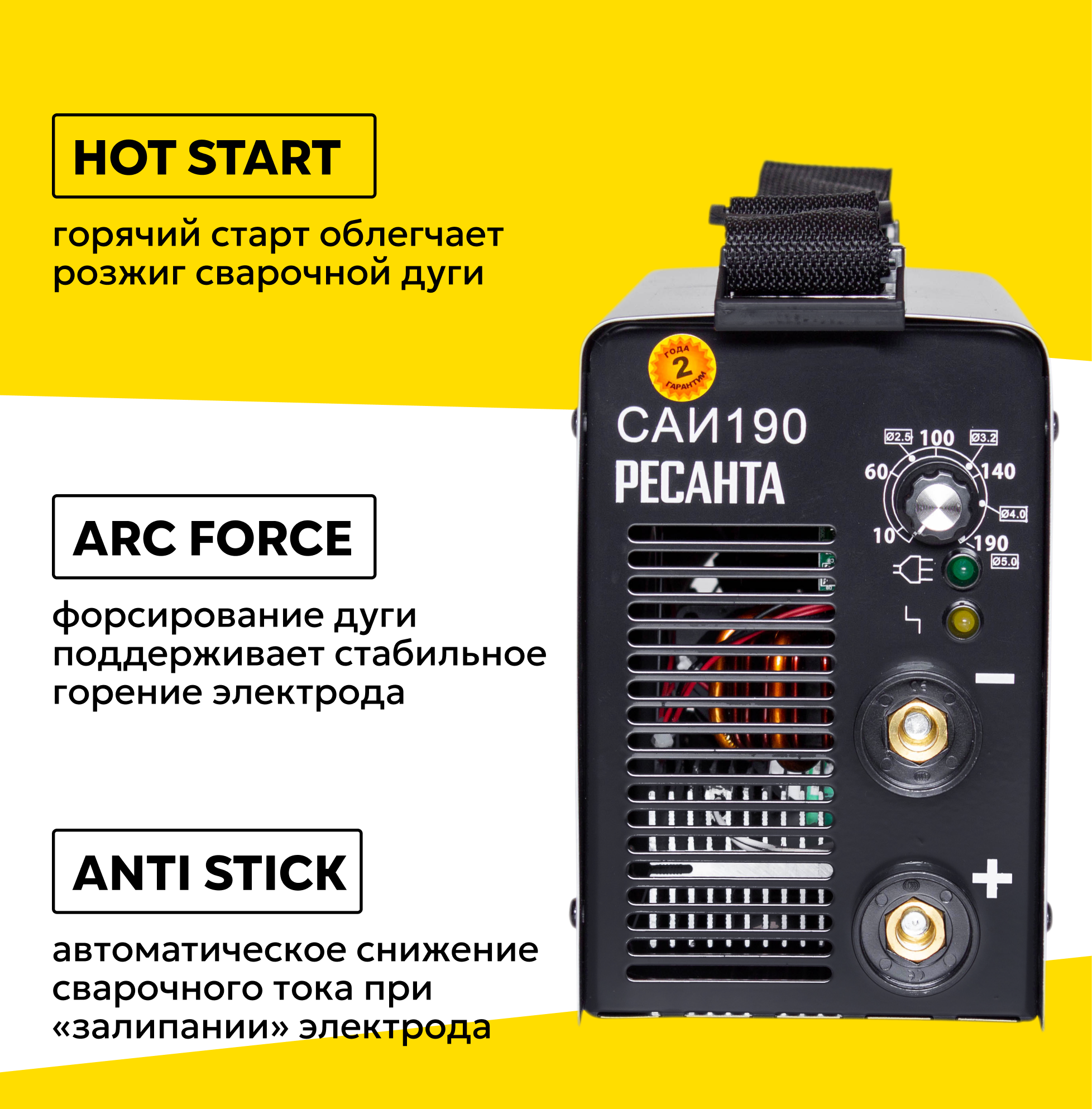 Небольшой и мобильный. Антизалипание. Большой диапазон сварочного тока.