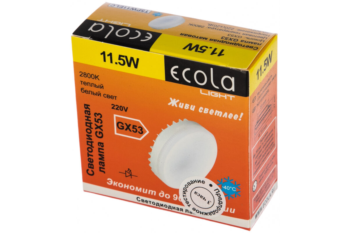 Светодиодная LED лампа Ecola GX53 11.5W(11W) 2800K 2K 27x75 матовая Light T5PW11ELC (упаковка 16 штук)