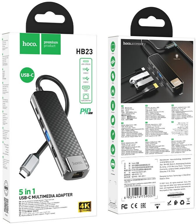 Ниже Вы можете прочитать отзывы на Хаб концентратор Type C Hoco HB23 Easy view // HDMI + USB3.0 + USB2.0 + RJ45 + PD переходник разветвитель для Apple MacBook, ознакомится с подробными характеристиками, посмотреть интересные обзоры и фотографии на Хаб концентратор Type C Hoco HB23 Easy view // HDMI + USB3.0 + USB2.0 + RJ45 + PD переходник разветвитель для Apple MacBook.