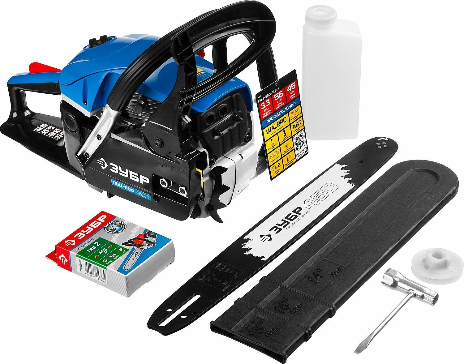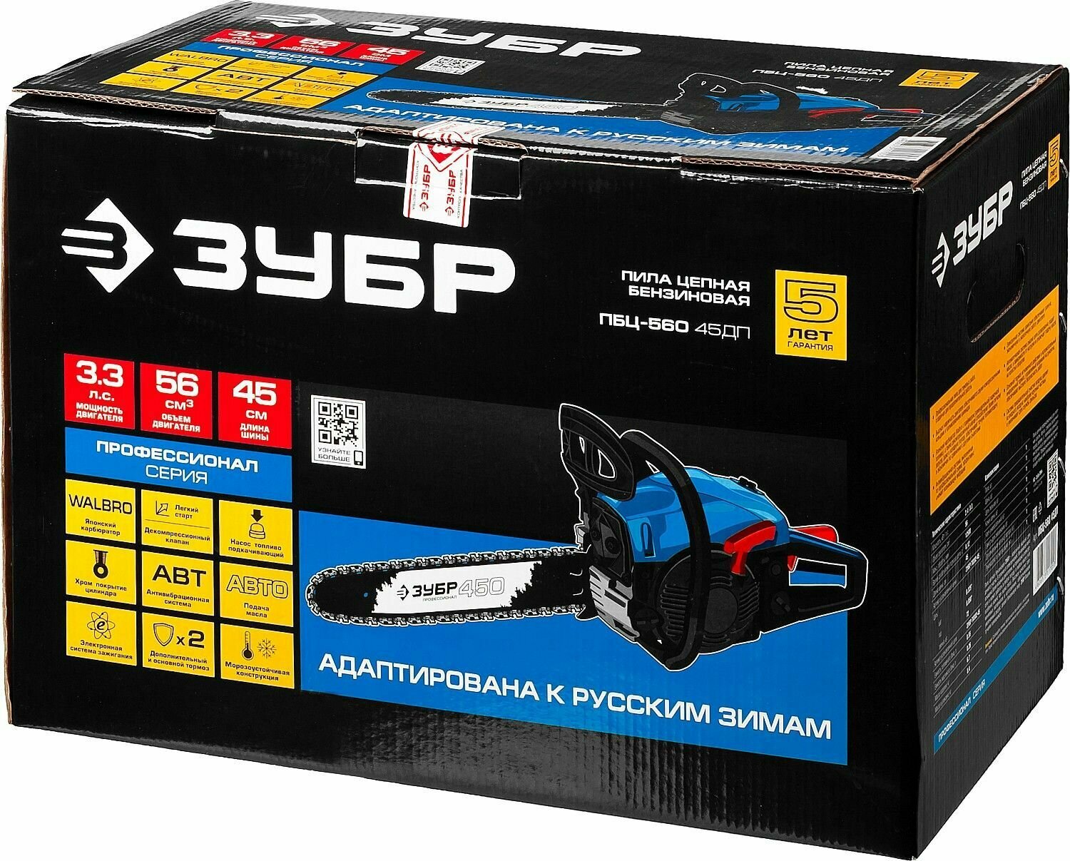 Купить Бензопила 56 см3, шина 45 см ЗУБР Профессионал ПБЦ-560 45ДП