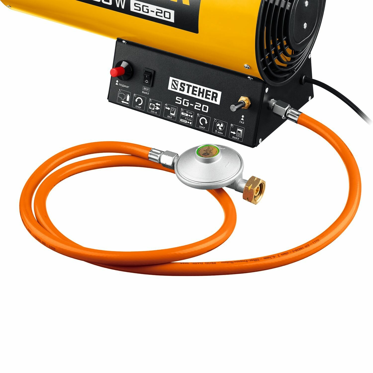 Пушка тепловая STEHER SG-20 газовая 17кВтх1,3кг/чх350м/ч регулировка 0,7-1,3кг/ч защ шланг редуктор