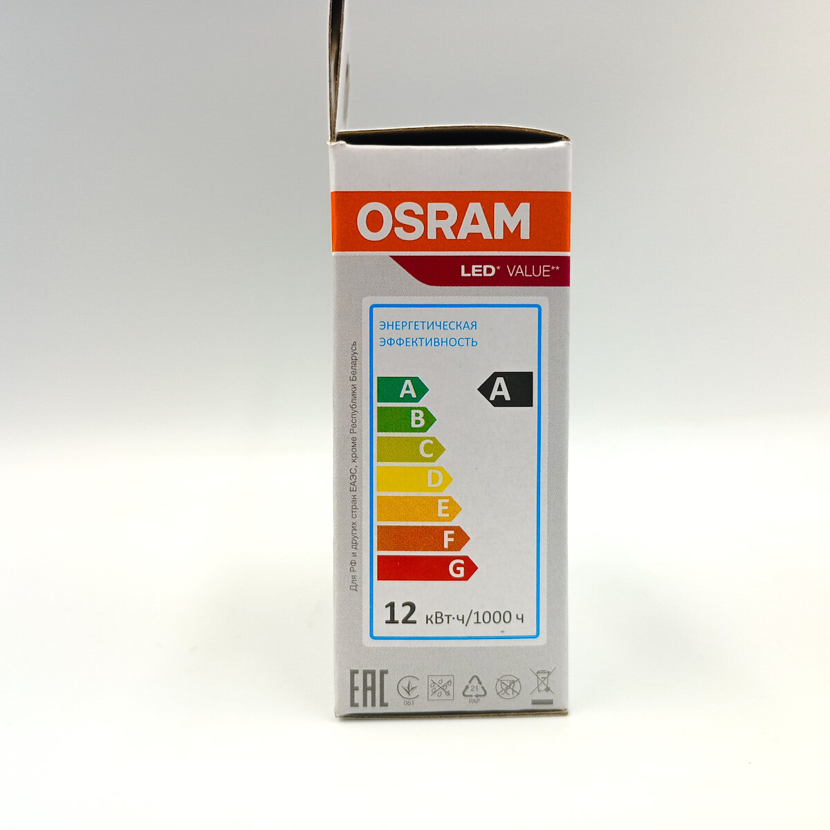 (12 шт.) Светодиодная лампочка OSRAM GX, мощность 12 Вт, напряжение питания 220 В, цветовая температура 4000 К, нейтральный белый свет, цоколь GX53, размер 73х28 мм
