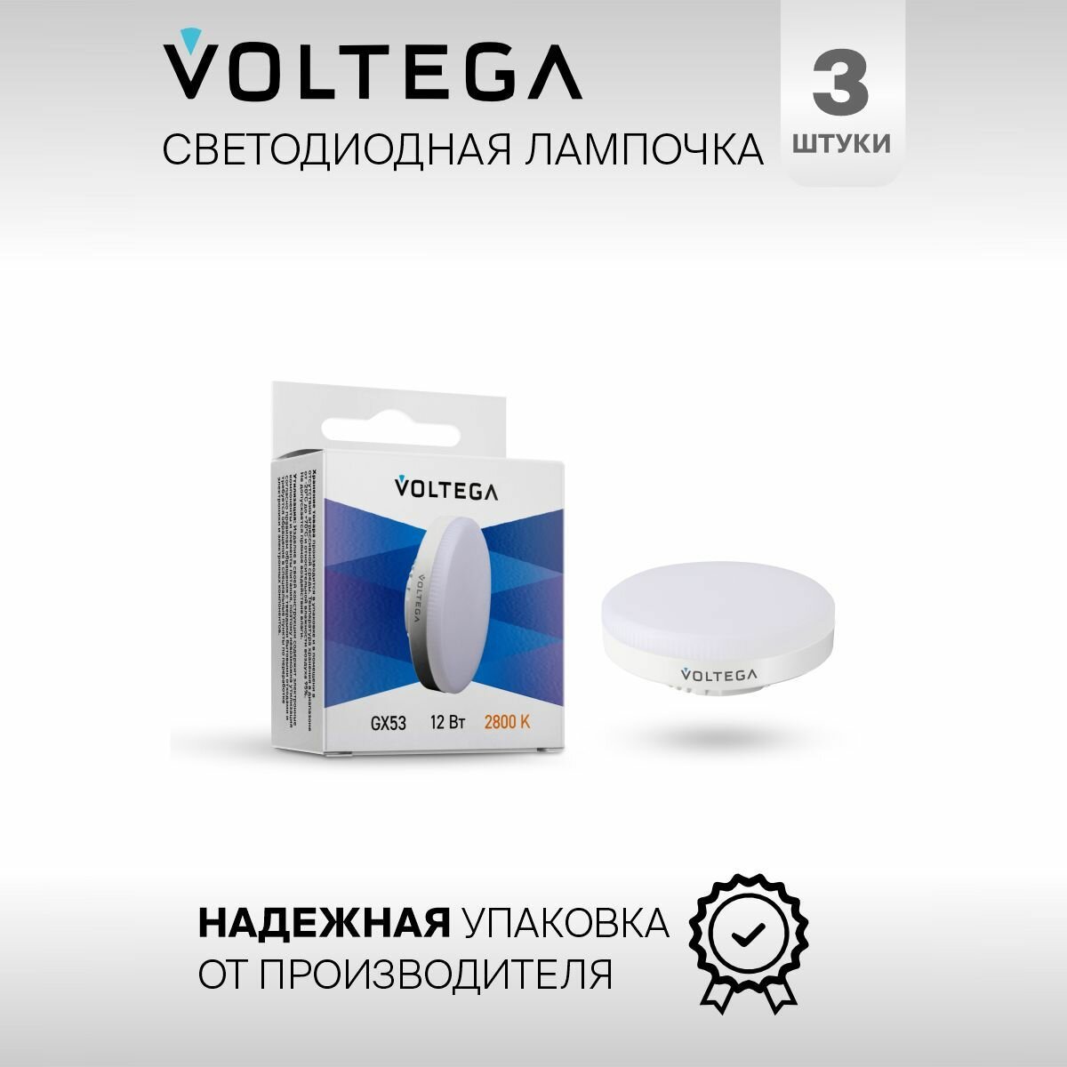 Купить Лампочка светодиодная GX53 форма таблетка 12W теплый свет Voltega Simple 2800K упаковка 3 штуки