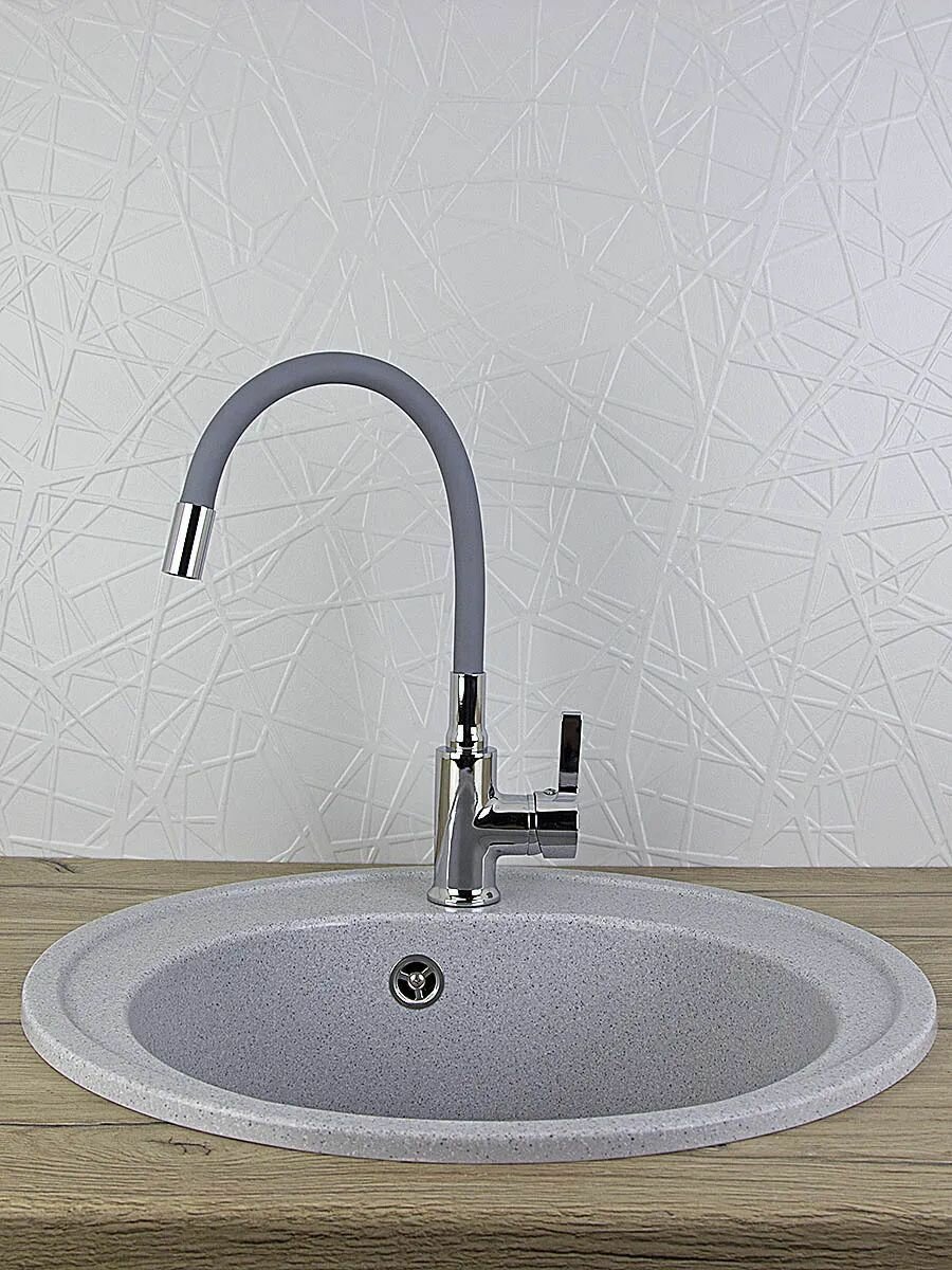 Смеситель для кухни с гибким гнущимся силиконовым изливом V-4064 Серый интересное: