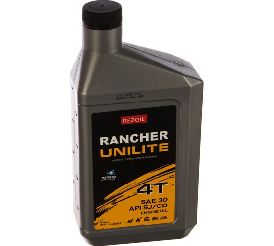 Масло для 4-х тактных двигателей (мотоблоки, генераторы, газонокосилки, виброплитыи пр.) минеральное REZOIL Rancher UNILITE SAE 30 API SJ/CF, 0.946 л