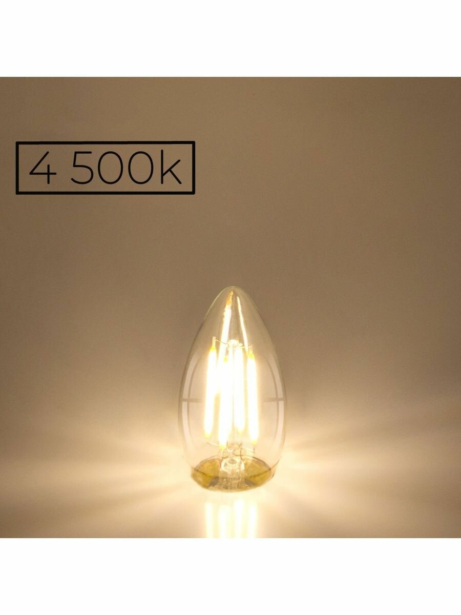 (5 шт.) Светодиодная лампочка General свеча E27 8W 4500K 4K 35x96 филамент (нитевидная), прозр 649975 Нейтральный белый. Цоколь E27
