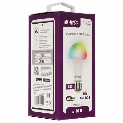 Умная лампа Hiper Iot A60 RGB E27 10Вт 1020lm Wi-Fi (упак:1шт) интересное: