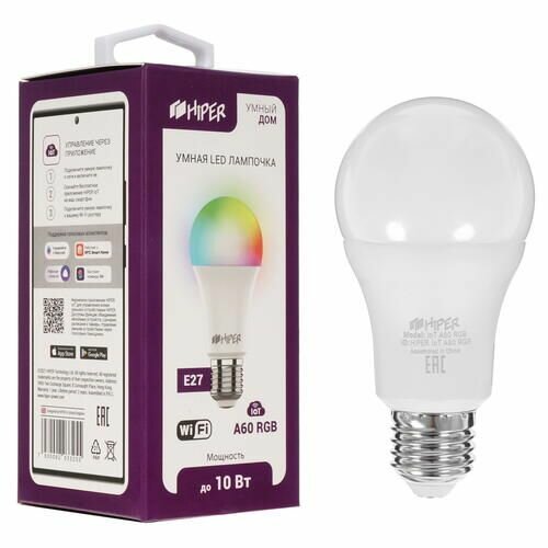 Умная лампа HIPER Iot A60 RGB E27 RGB 10Вт 1020lm Wi-Fi (1шт)