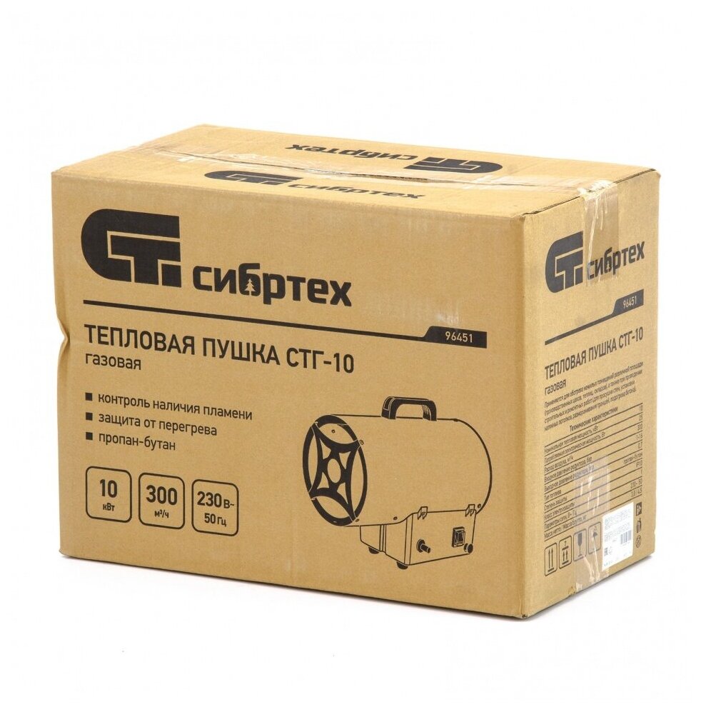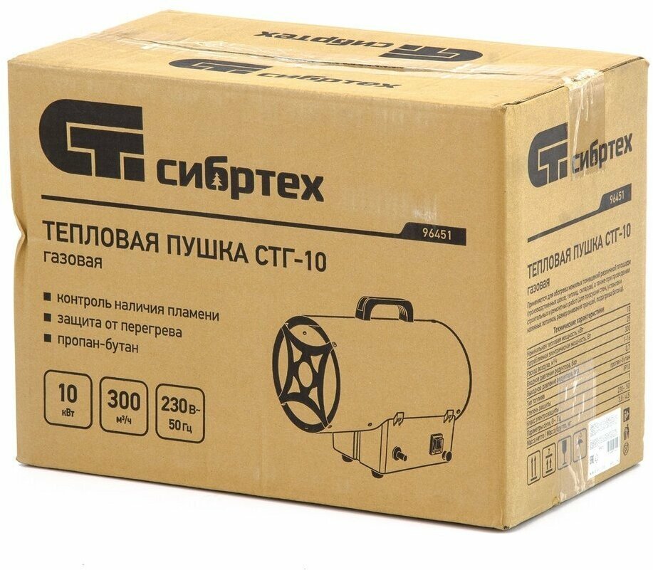 Газовая тепловая пушка СТГ-10, 10 кВт, 300 м3/ч, пропан-бутан, Сибртех, 96451 интересное: